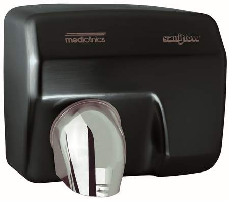 De stoere look van dit zwarte pareltje uit de exclusieve Mediclinics-lijn spreekt elke liefhebber van design direct aan. De werking van de droger is zeer eenvoudig de droger start automatisch wanneer uw bezoeker zijn handen onder het apparaat plaatst. Met een luchttemperatuur van 50 graden Celsius en slechts 29 seconden droogtijd zijn uw gasten altijd verzekerd van een optimale en comfortabele handhygiëne.